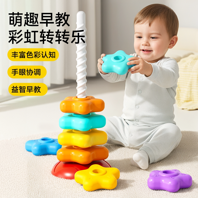 3岁宝宝旋转套圈玩具早教礼物 彩虹转转乐叠叠乐婴幼儿转转塔0