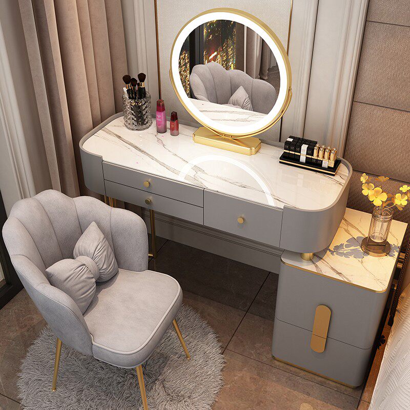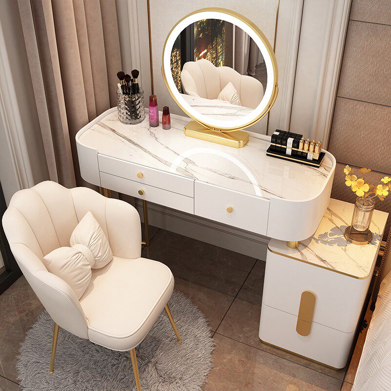 卧室现代简约轻奢高级小户型化妆桌收纳柜一体 梳妆台实木岩板新款