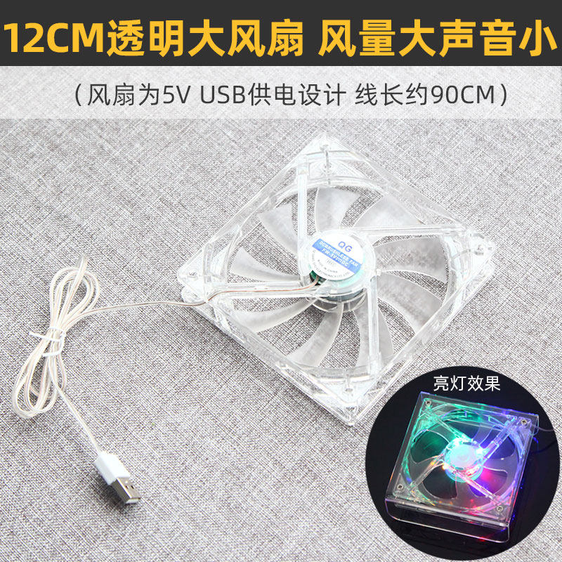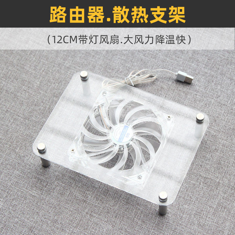 透明带灯风扇路由器散热器机顶盒交换机光猫5V大风扇USB底座支架由