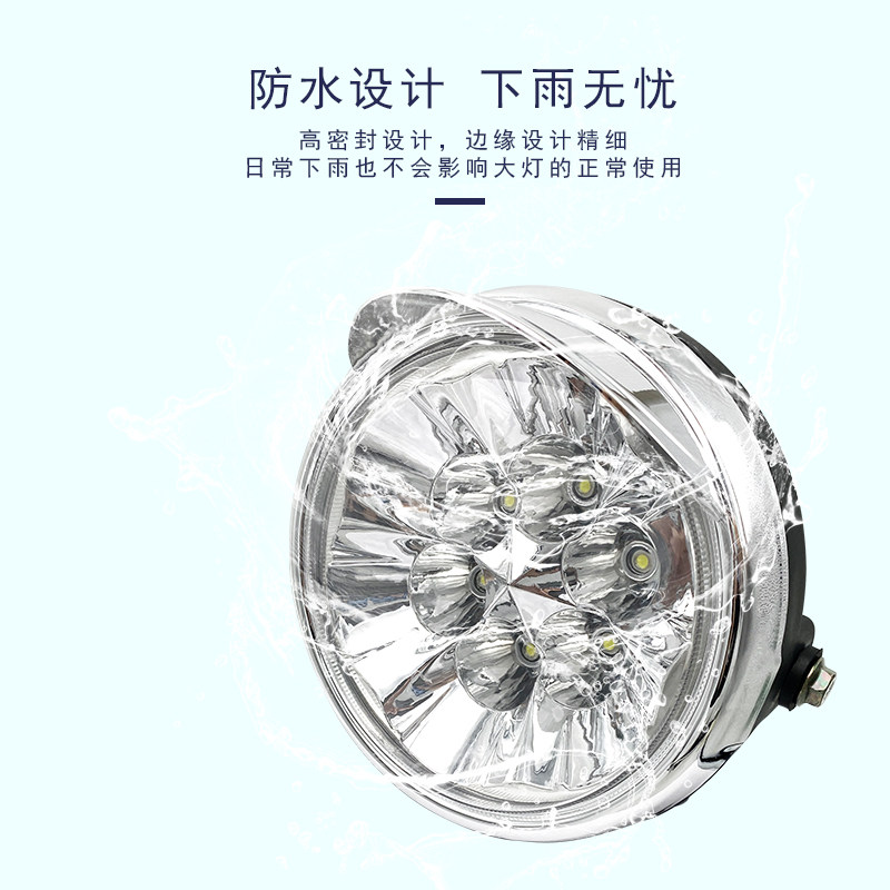 圆大灯通用防水众品汇大灯 电动三轮车LED前大灯总成超亮改装