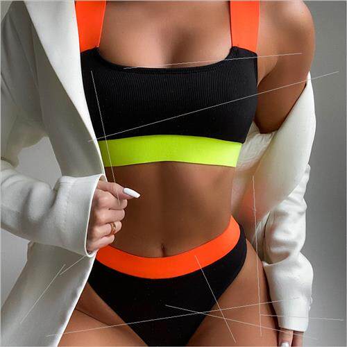 Womens Spl Bikini Bandeau Sexy Paneled Color Solid Swimsu由