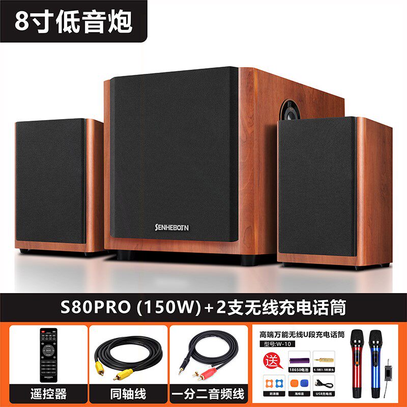 家用K歌客厅大功率蓝 森海博顿8寸超重低音炮电脑音响牙音箱台式