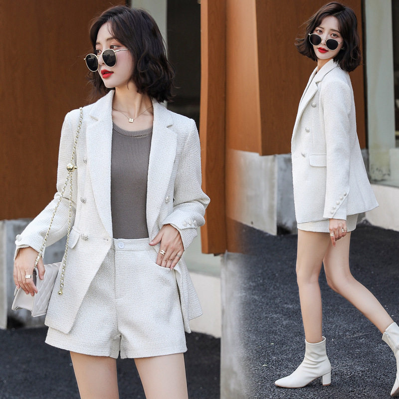 时尚 女装 新款 外套短裤 两件套套装 粗线亮片呢料小西装 2021秋冬季
