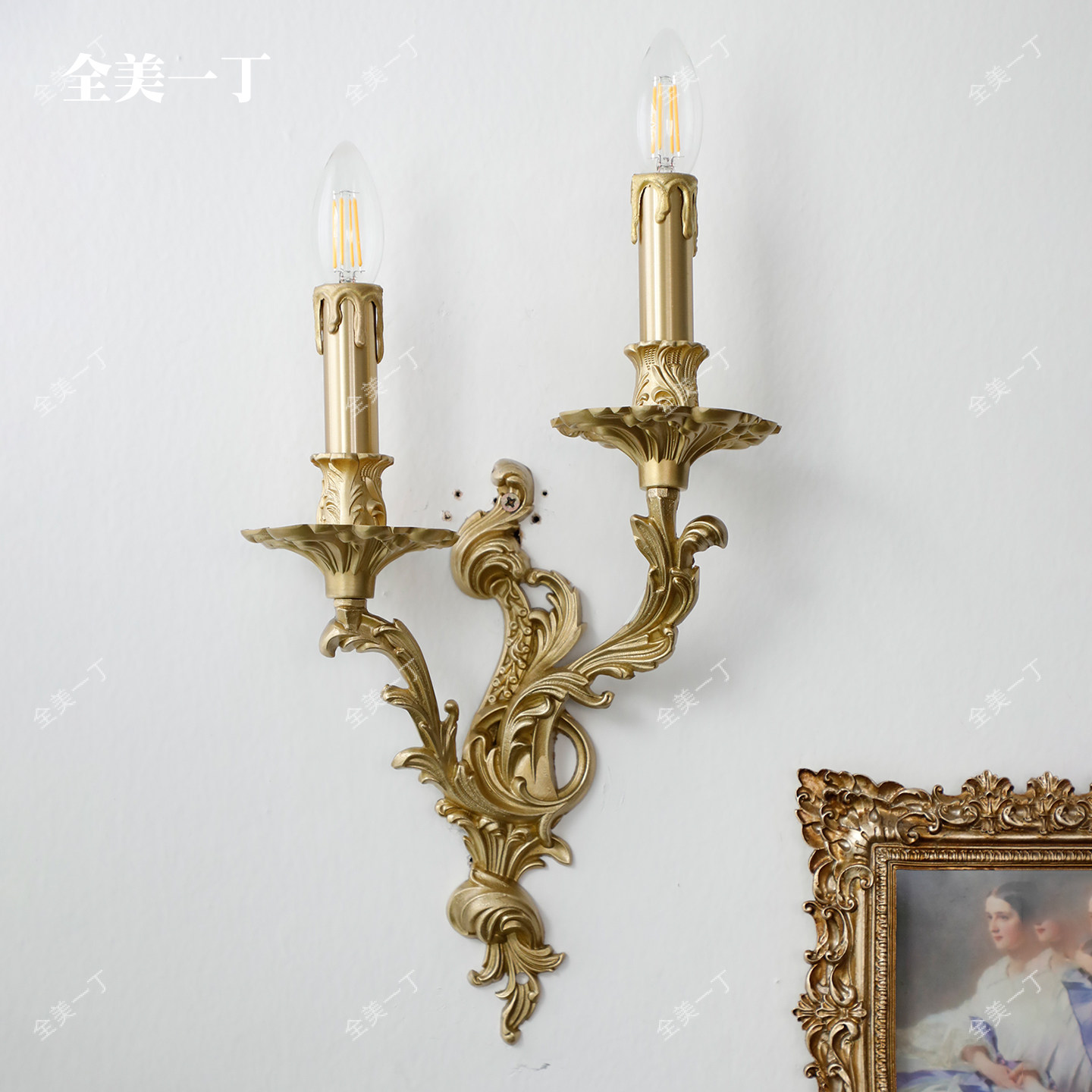 全铜壁灯客厅餐厅卧室过道大气奢华别墅灯具壁灯 全美一丁复古法式由