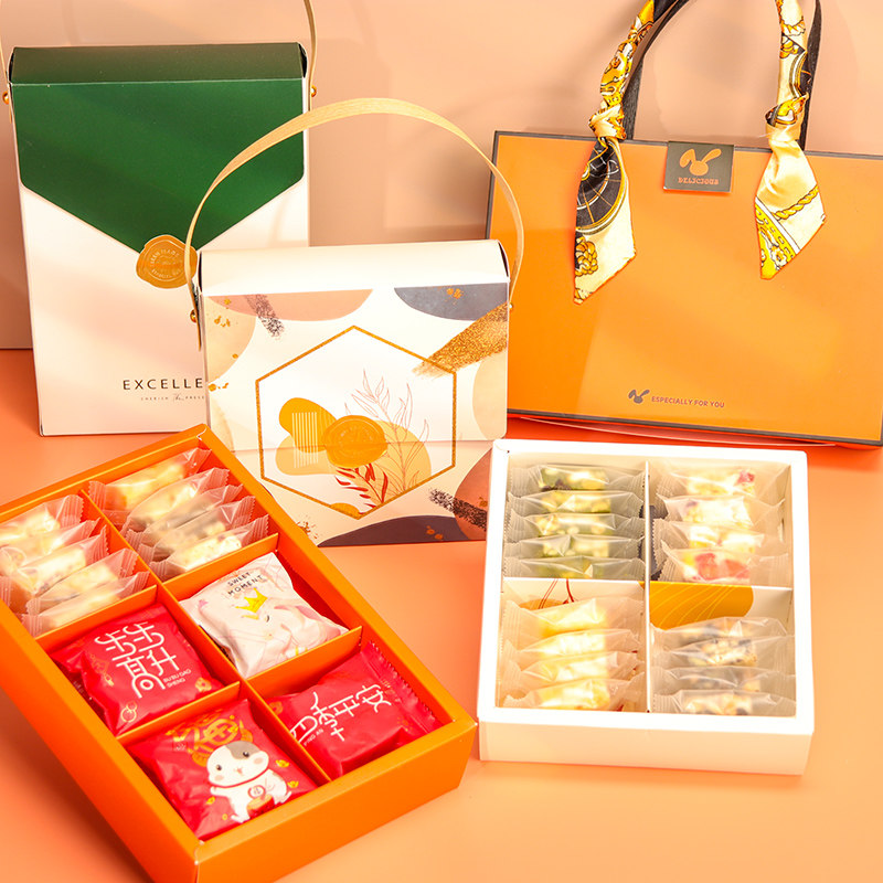 雪花酥包装 6格口味零食糖果伴手礼盒绿色圣诞节饼干盒4 盒新年分装