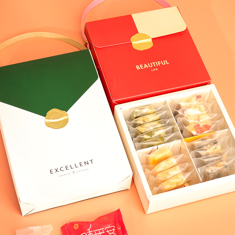 雪花酥包装 6格口味零食糖果伴手礼盒绿色圣诞节饼干盒4 盒新年分装由