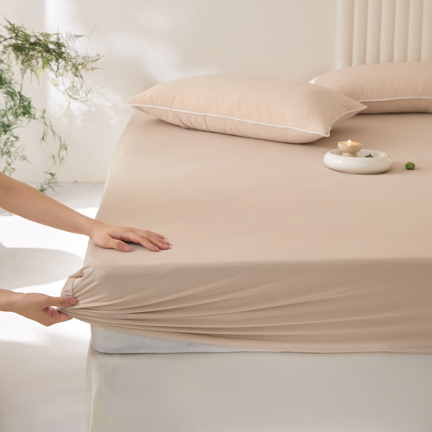 A类母婴级水洗棉床笠单件纯色床罩席梦思床垫保护套防滑床单高级