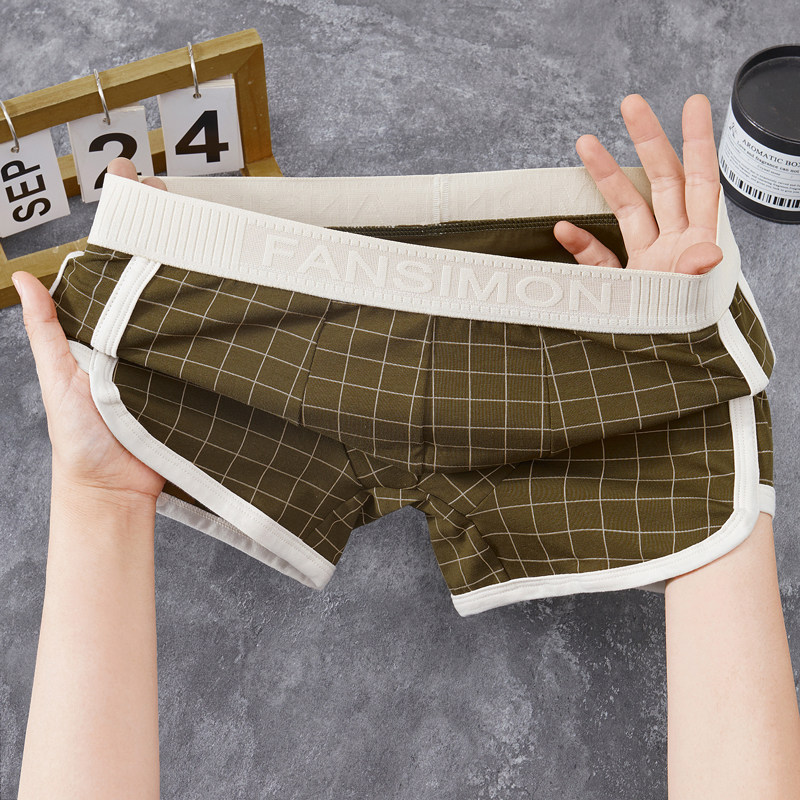 内裤 格子男士 经典 头潮流 透气中腰四角裤 短裤 棉质男生平角裤 宽松版