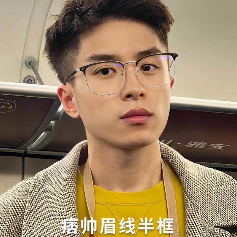 可配度数近视框眼镜防蓝光 半框商务眼睛架大脸定制成品光学镜男士