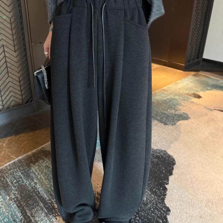 清仓 慵懒阔腿裤 女秋冬季 chao有份量桑蚕丝绵羊毛薄绒弯刀奶奶裤