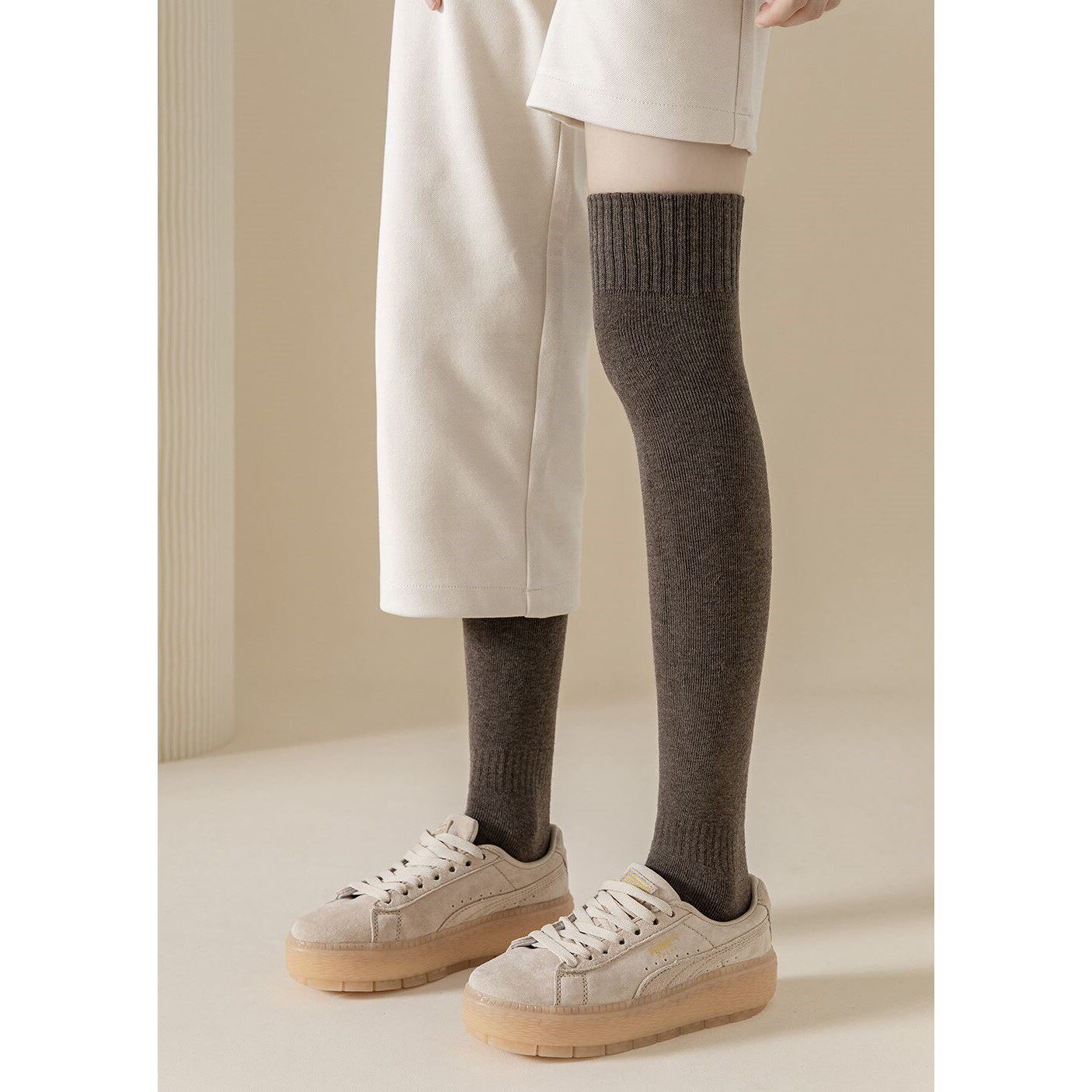 秋冬加厚过膝袜女加绒保暖毛圈大腿袜女高筒防滑护膝长筒袜子小腿
