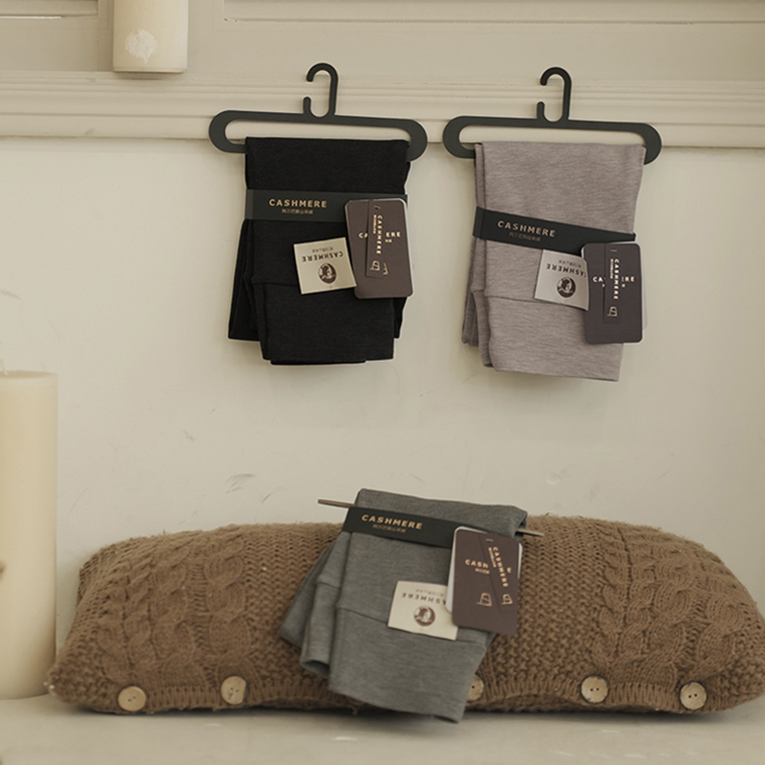 高腰秋裤 一丝牵 山羊绒打底裤 女修身 子冬 外穿内搭加厚保暖针织裤