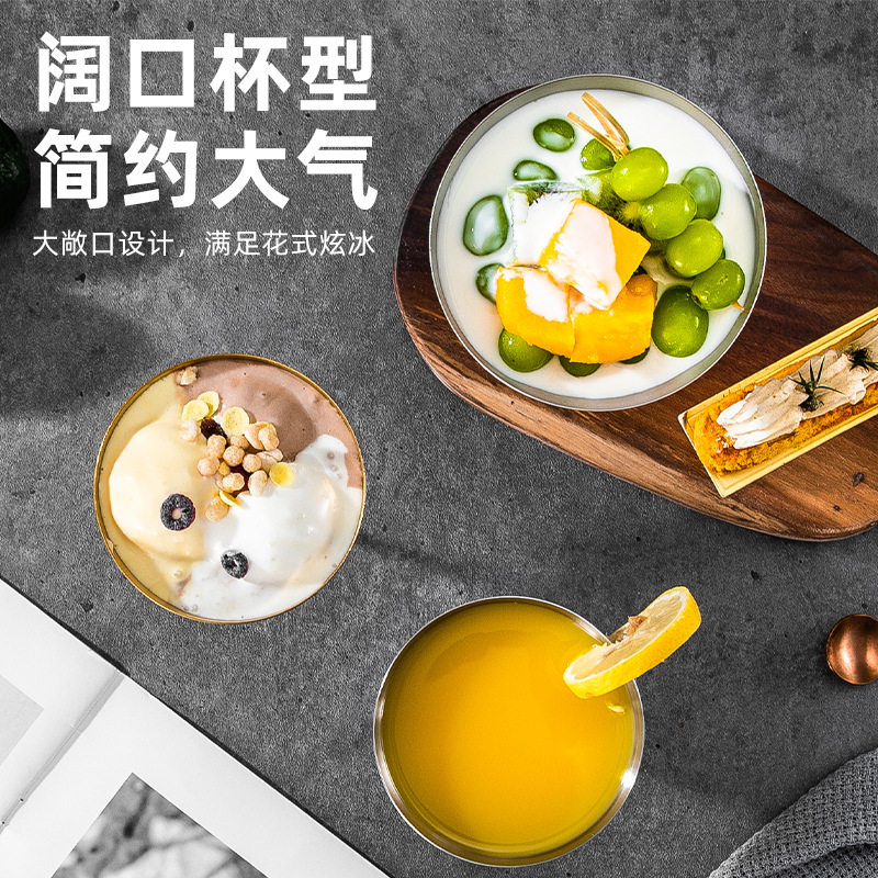 布丁杯冰淇淋杯雪糕杯304不锈钢高脚杯调酒杯雪球沙拉甜品小吃