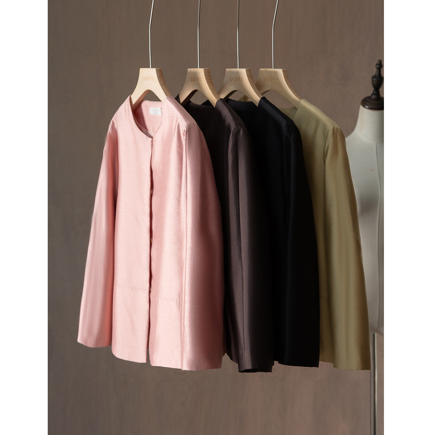 短外套开衫 春 极简通勤气质丝毛外套女桑蚕丝羊毛无领短款 一丝牵由