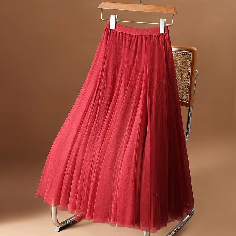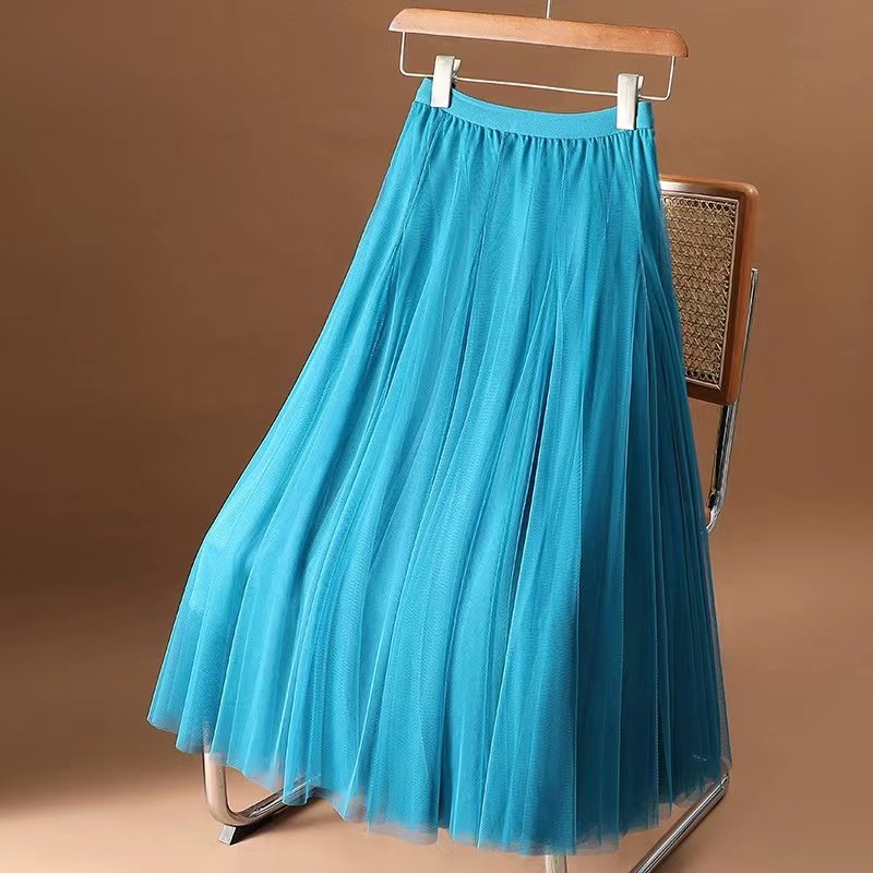 仙女裙大摆跳舞裙 网纱裙半身裙女高腰显瘦A字百褶秋冬纱裙中长款