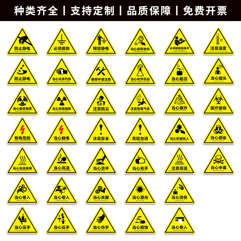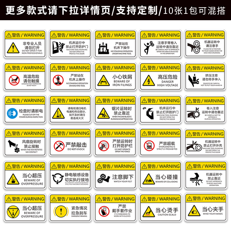 为您提供商品当心机械伤人警示贴小心有电危险触电标识牌工厂设备安全标识贴纸生电标志警告消防标牌高压注意提示标示牌子的详细介绍,