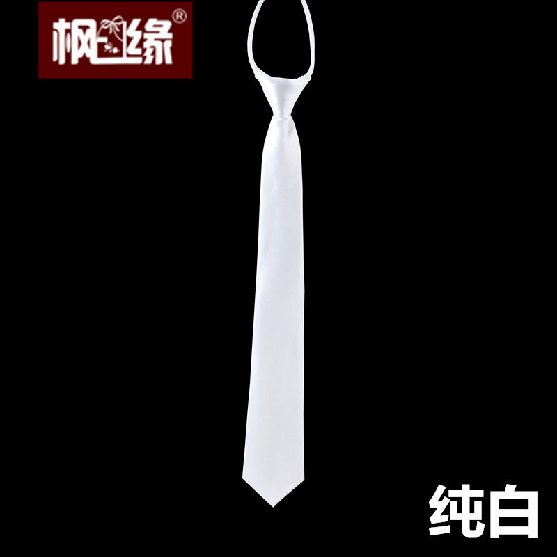 易拉得拉链懒人 亮面亚光纯白色8cm方便扎染领带 商务正装 男女
