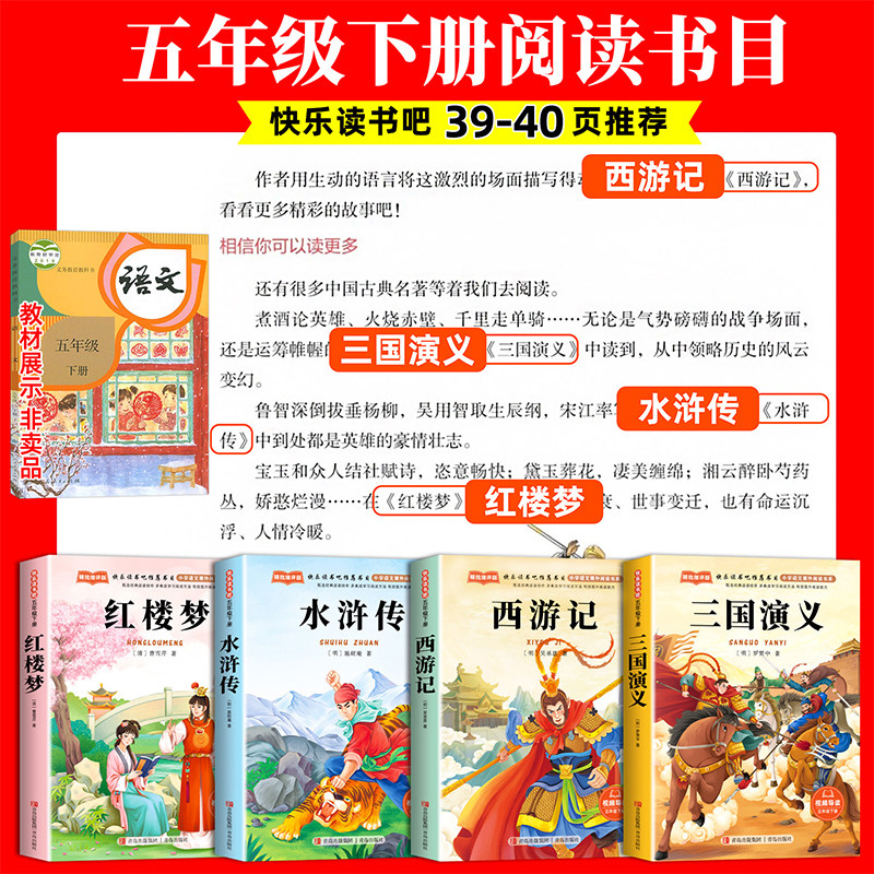为您提供商品本配套人教版 四大名著原著正版 快乐读书吧五下中国红楼梦水浒传全套5 西游记三国演义青少年版 课外书正版 小学生版 五年级下册必读的详细介绍,
