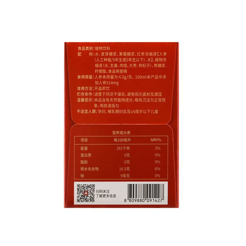 进口韩国正官庄非高丽参饮品红枣人参红参液红参元 瓶装 体验装