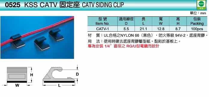 为您提供商品CATV固定座CATV 台湾KSS 原装 100只 UL尼龙 黑色 代理促销的详细介绍,