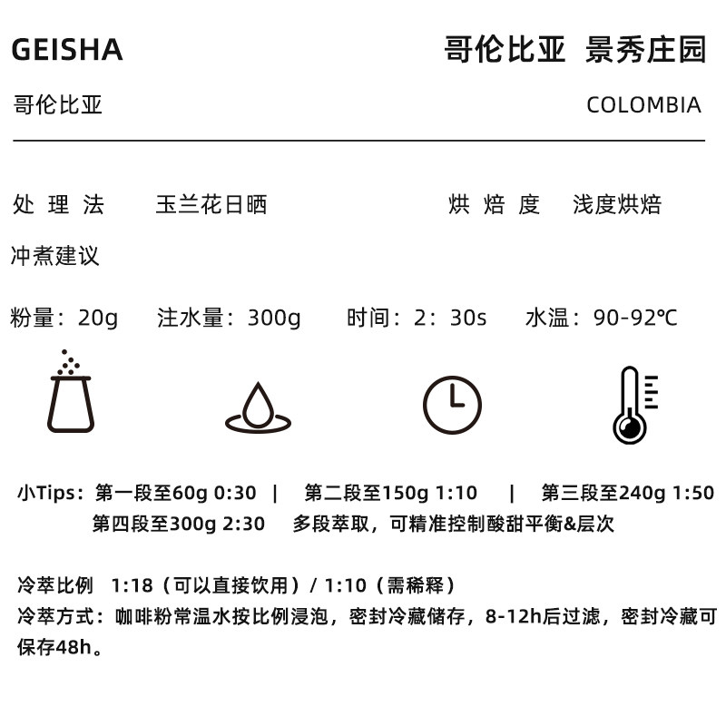 为您提供商品Grain Full小满哥伦比亚瑰夏精品单品浅焙新鲜咖啡粉现磨手冲美式的详细介绍,