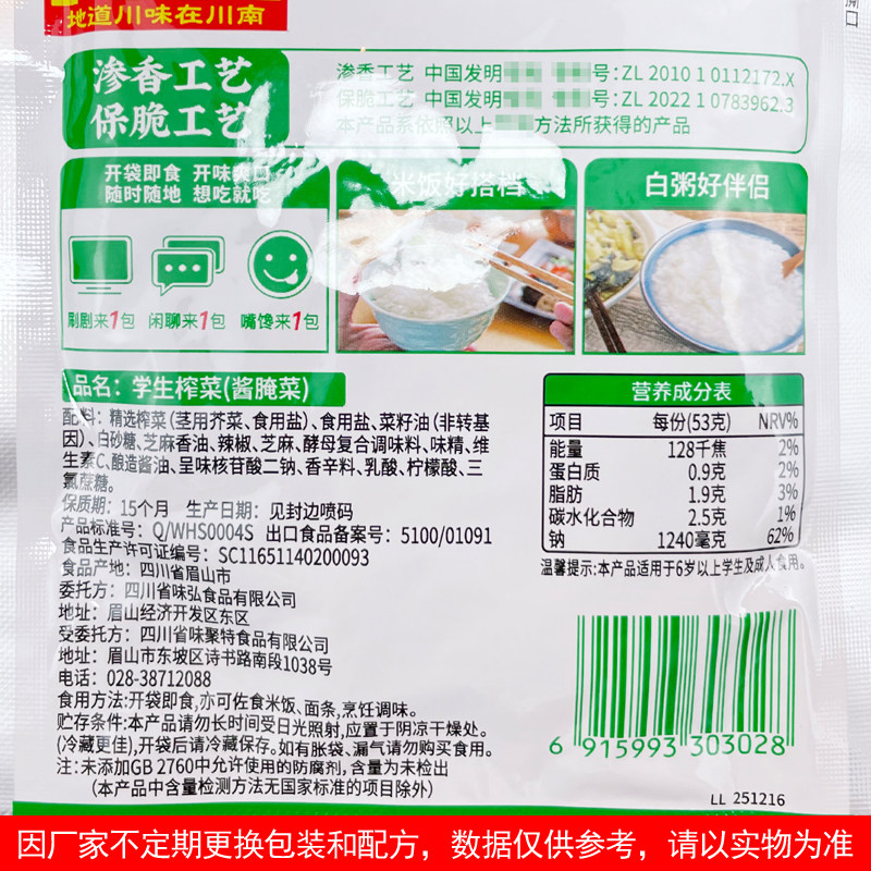为您提供商品清淡酱腌菜腌制泡菜脆口榨菜丝早餐小菜 川南学生榨菜丝53g小袋装的详细介绍,