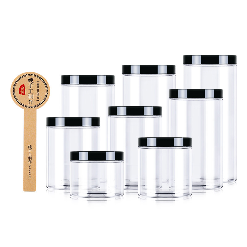 桶零食蜂蜜饼干拼豆收纳盒 透明盖pet密封罐空塑料瓶子食品级包装