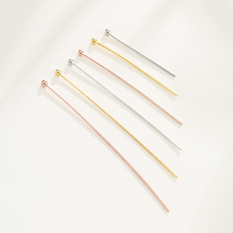 S925纯银diy女手链项链吊坠串珠手工银配件T字针平头针9针圆头针