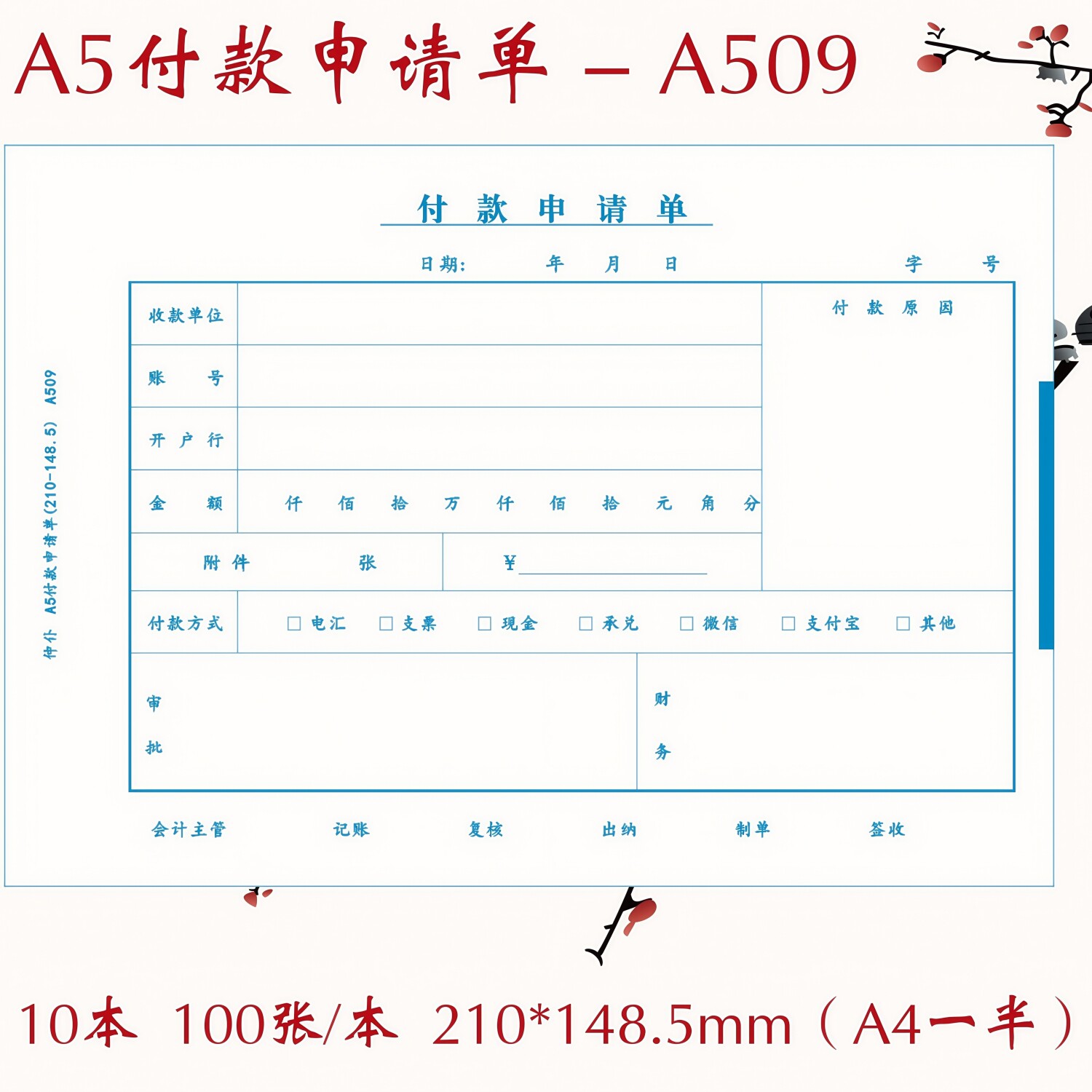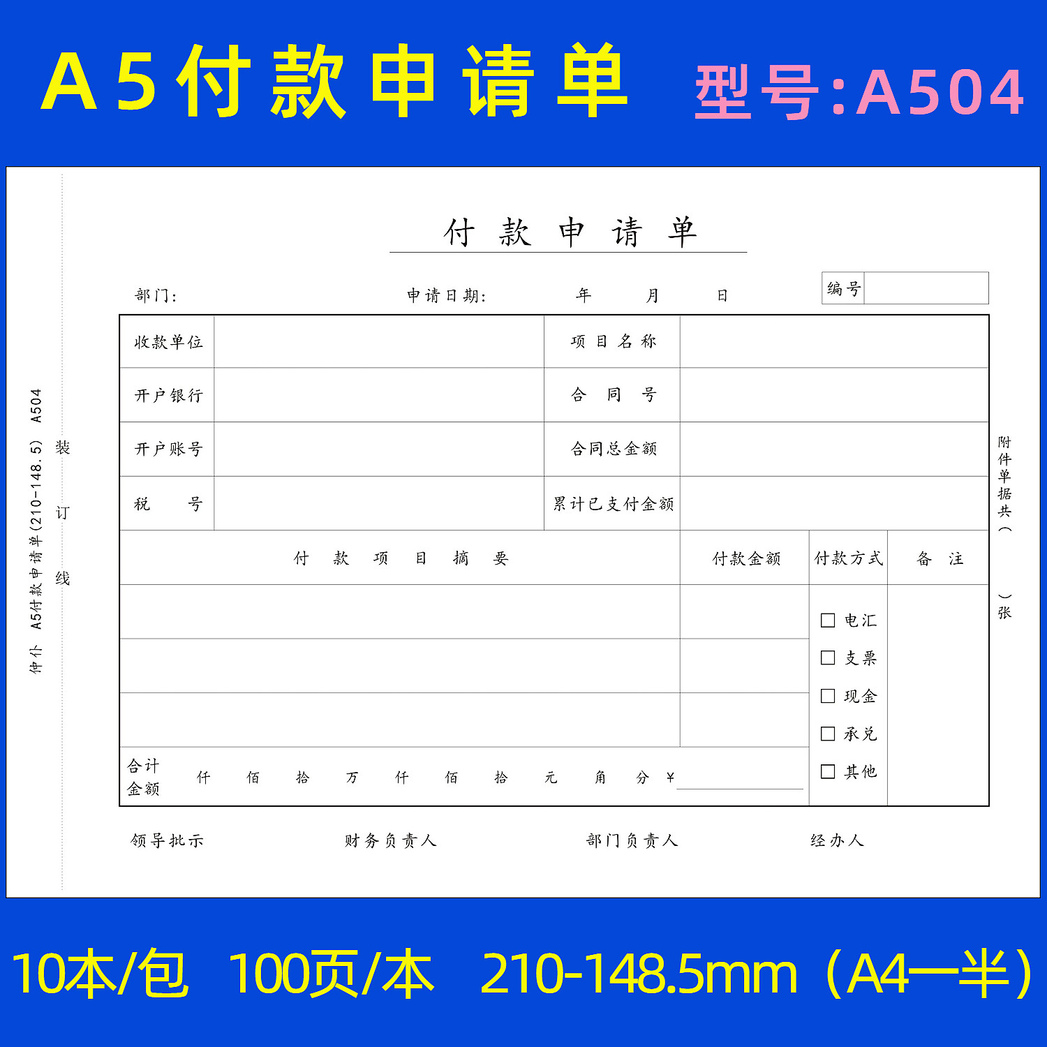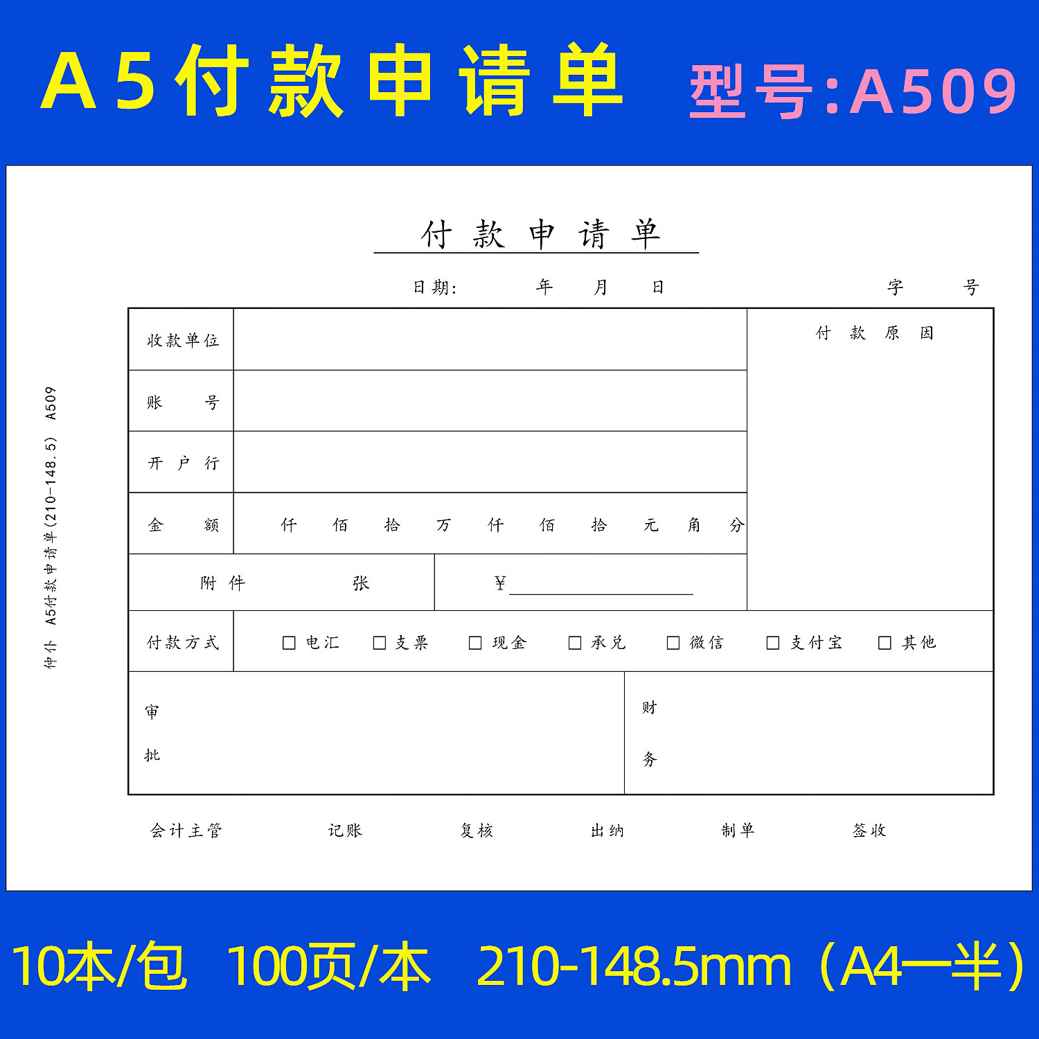 单支款 1000张A5付款 申请单70克A4纸一半付款 申请书付款 支出单 用款