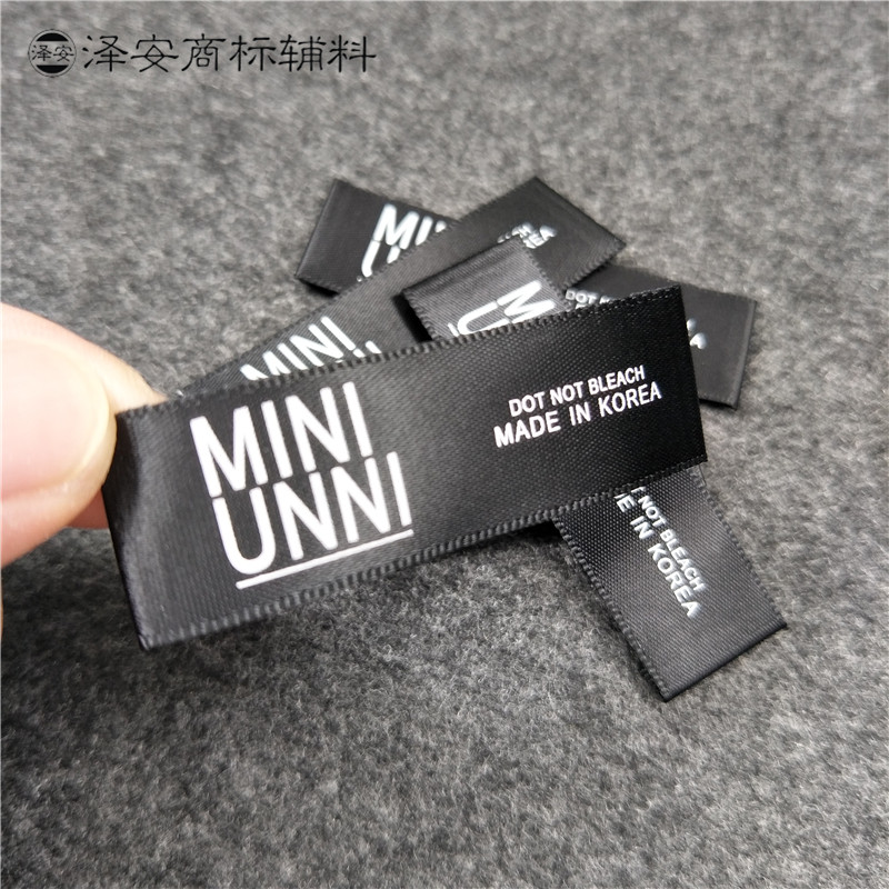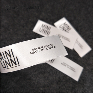韩国制造MADE KOREA黑色白色领标主唛头商标布标标签洗水标由