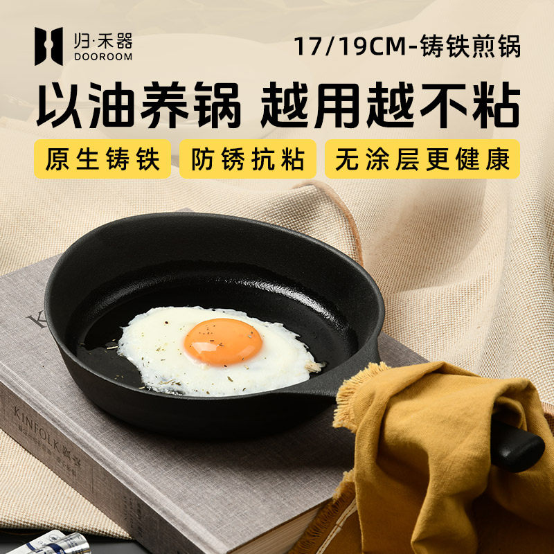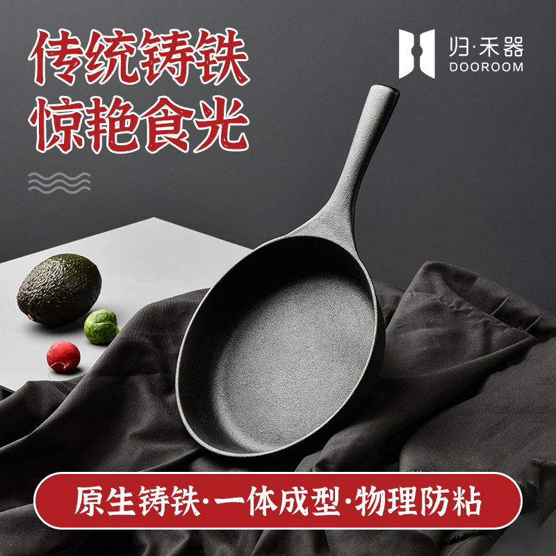 归禾器铸铁平底不易粘锅早餐小煎锅无涂层家用生铁锅煎蛋锅牛排锅由