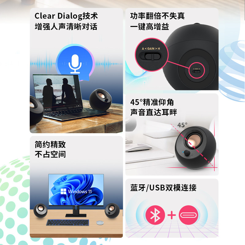 创新Pebble 电脑家用游戏线控音箱 V3蓝牙桌面音响USB笔记本台式由
