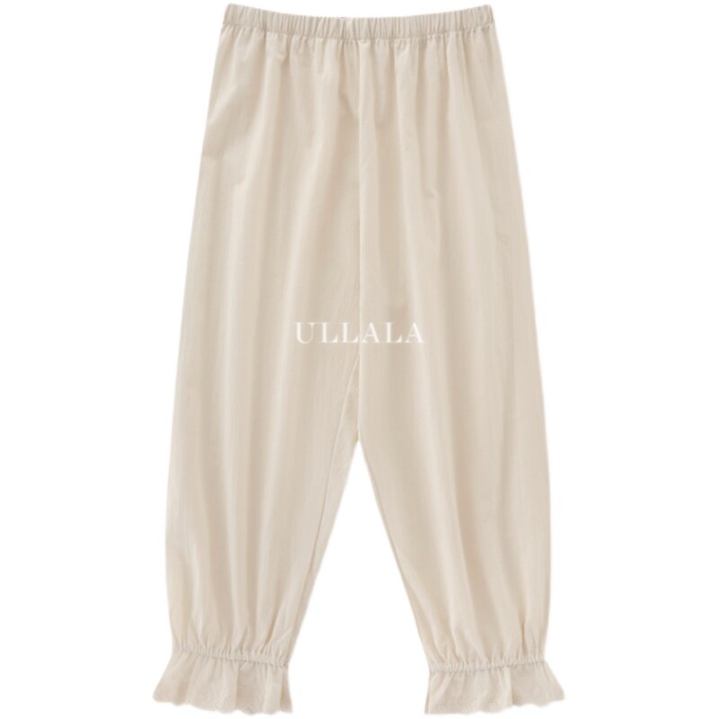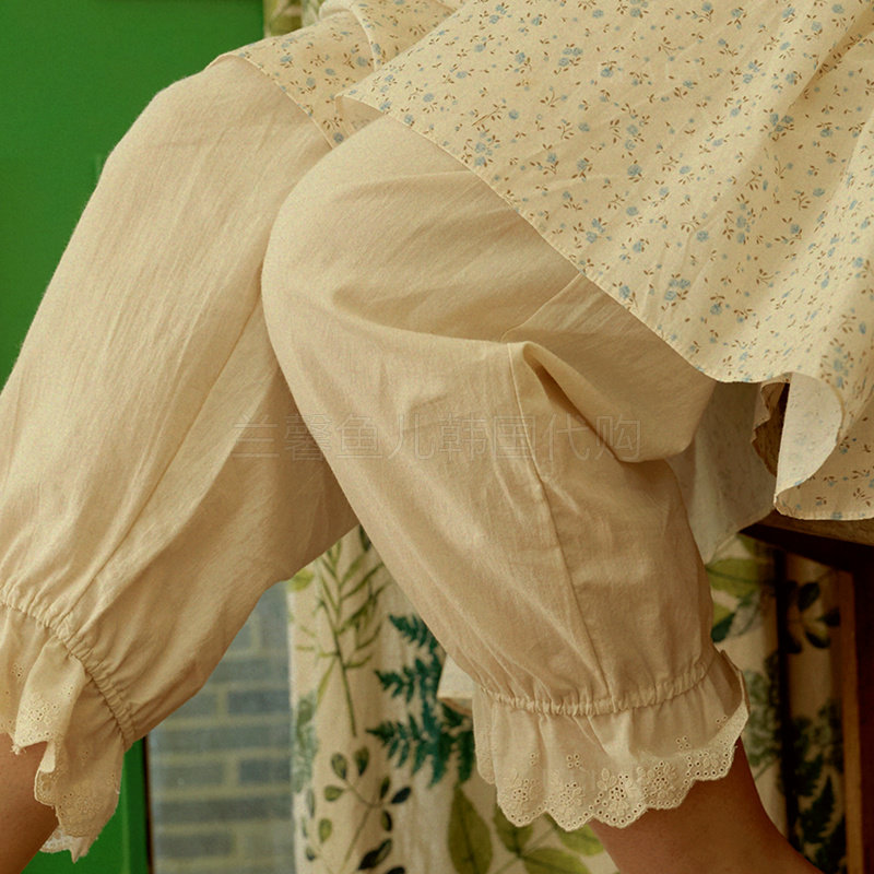 纯棉甜美蕾丝花边百搭九分家居睡裤 女 韩国代购 ULLALA2021春夏新款