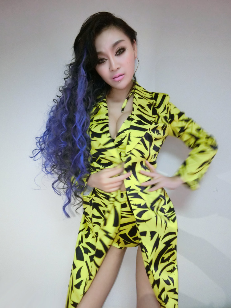 为您提供商品新款 夜店酒吧dj女歌手ds演出服性感爵士舞台领舞性感王色印花西装的详细介绍,