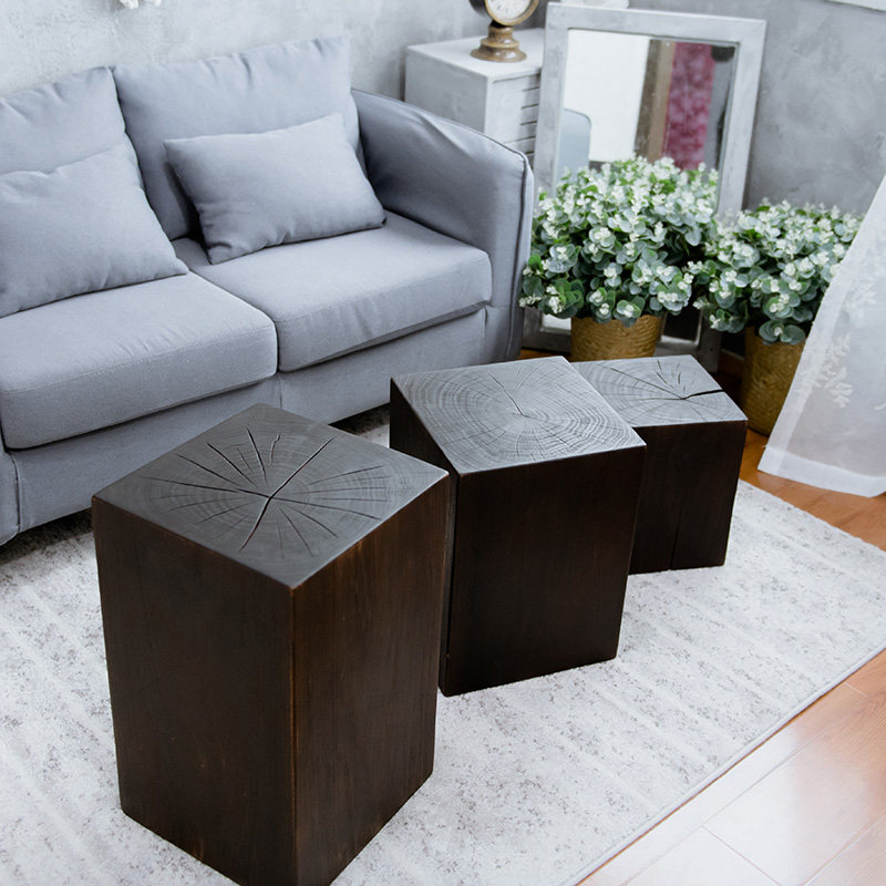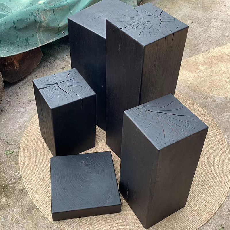 为您提供商品简约原木墩实木桩坐凳碳化方型木头墩做旧树桩实木墩子树凳木方条的详细介绍,