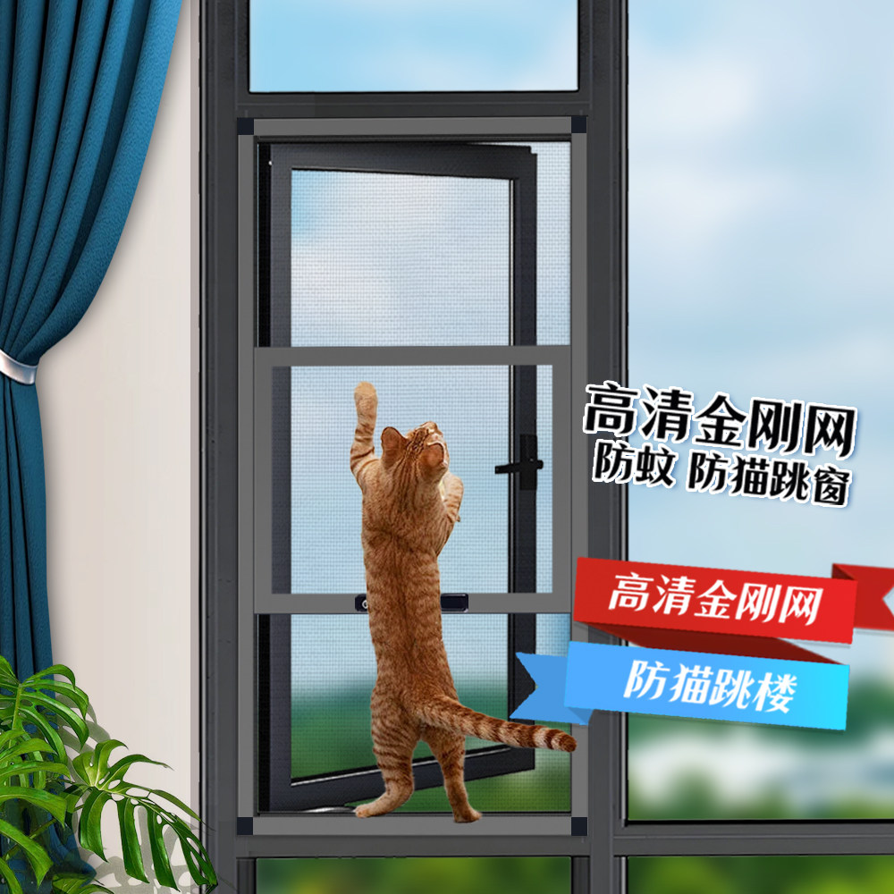 窗户防蚊纱窗网自装 磁吸隐形金刚纱网定制窗纱网自粘 升级加厚