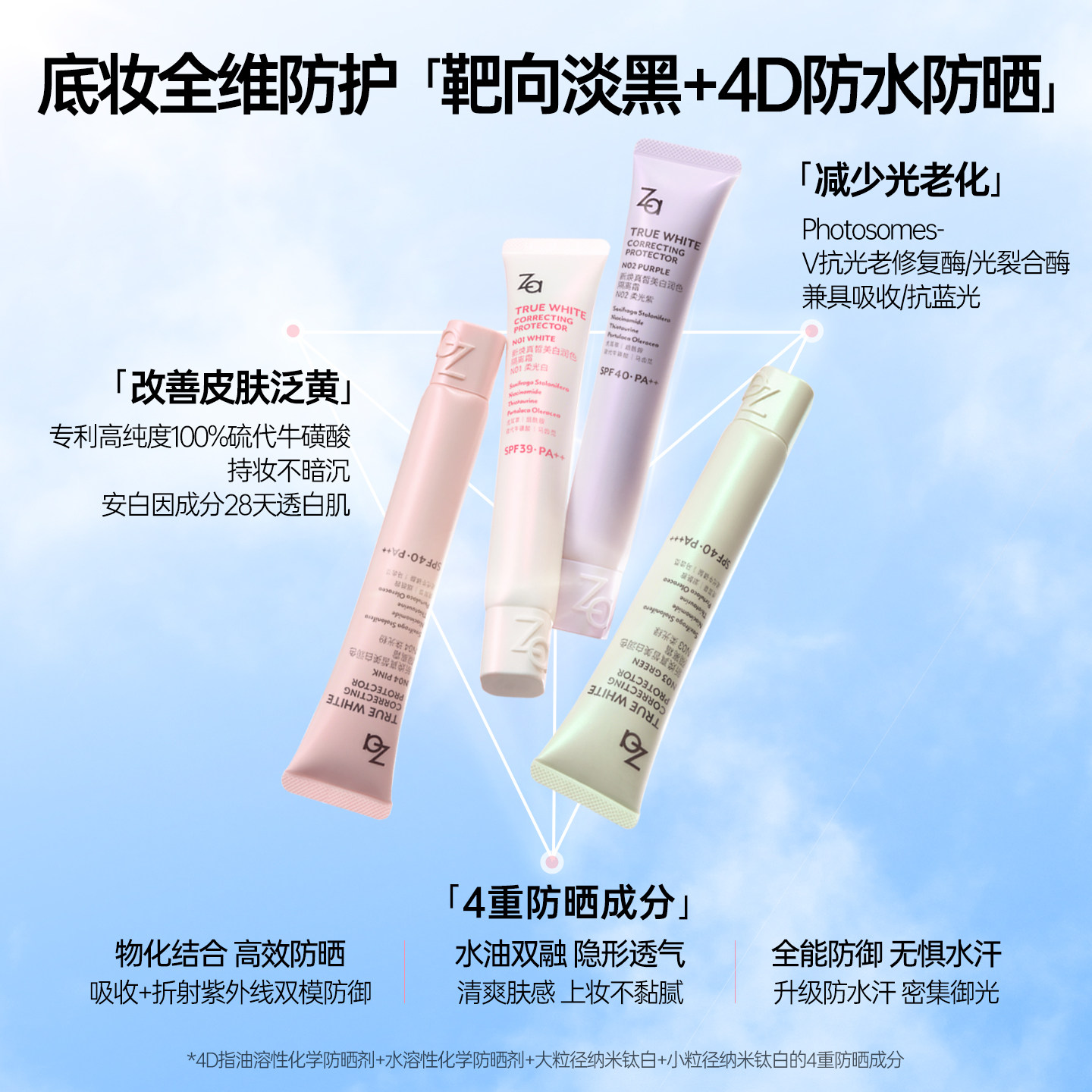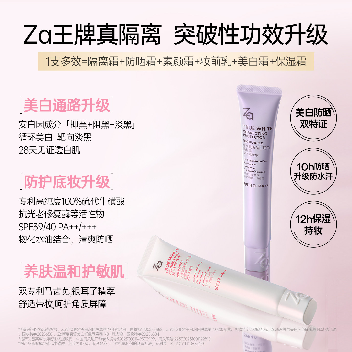 防水遮瑕 Za姬芮美白防晒霜隔离贴贴霜妆前乳素颜霜三合一提亮保湿