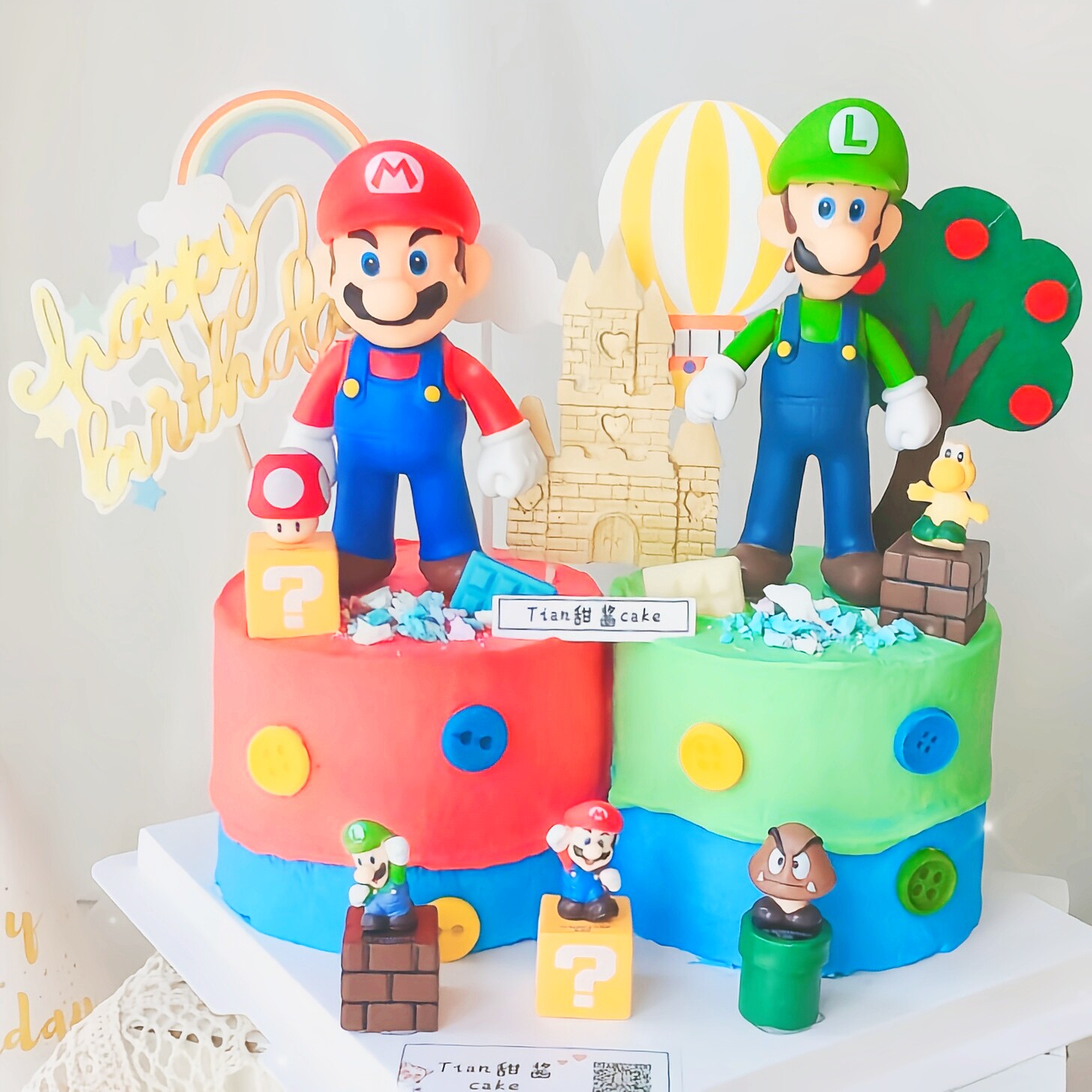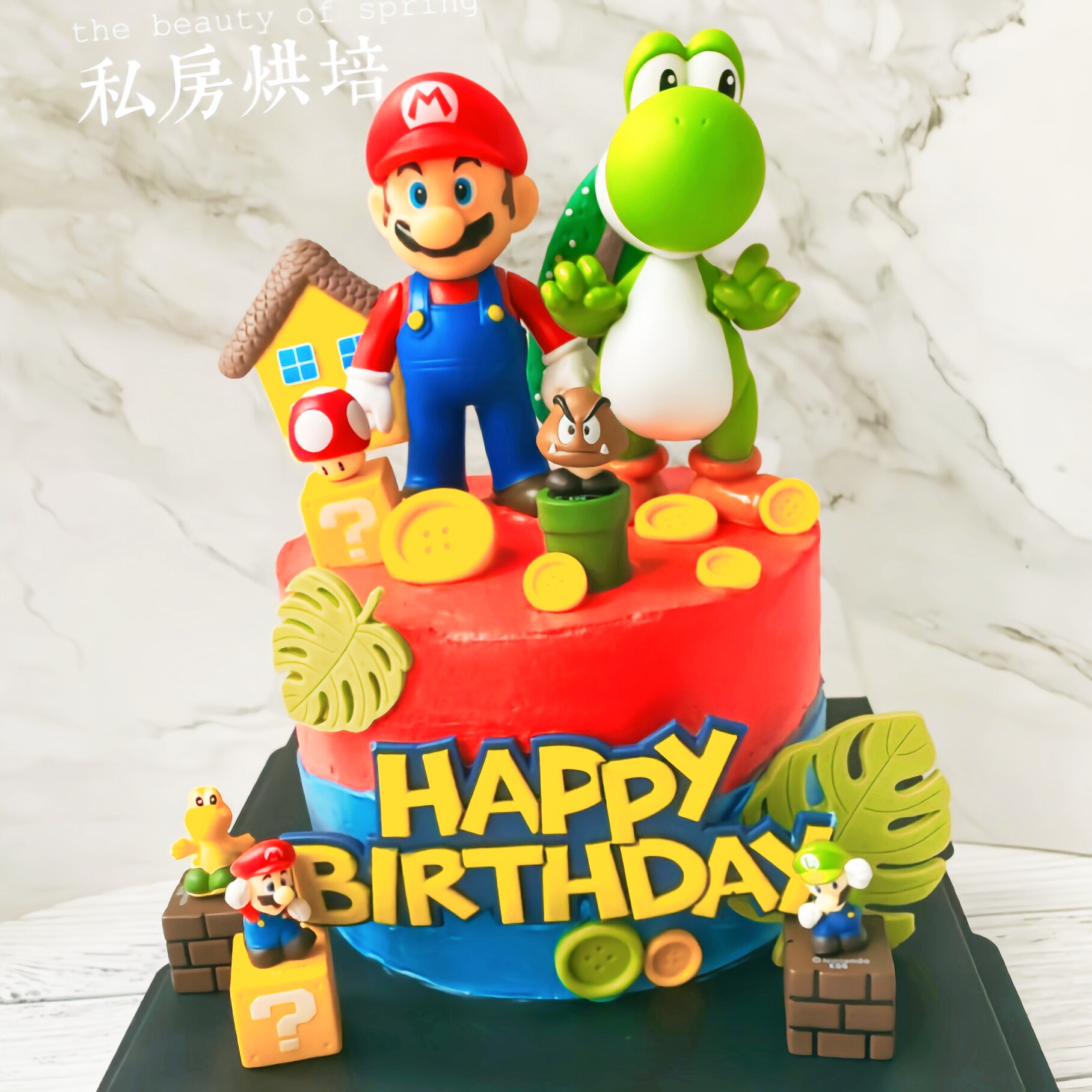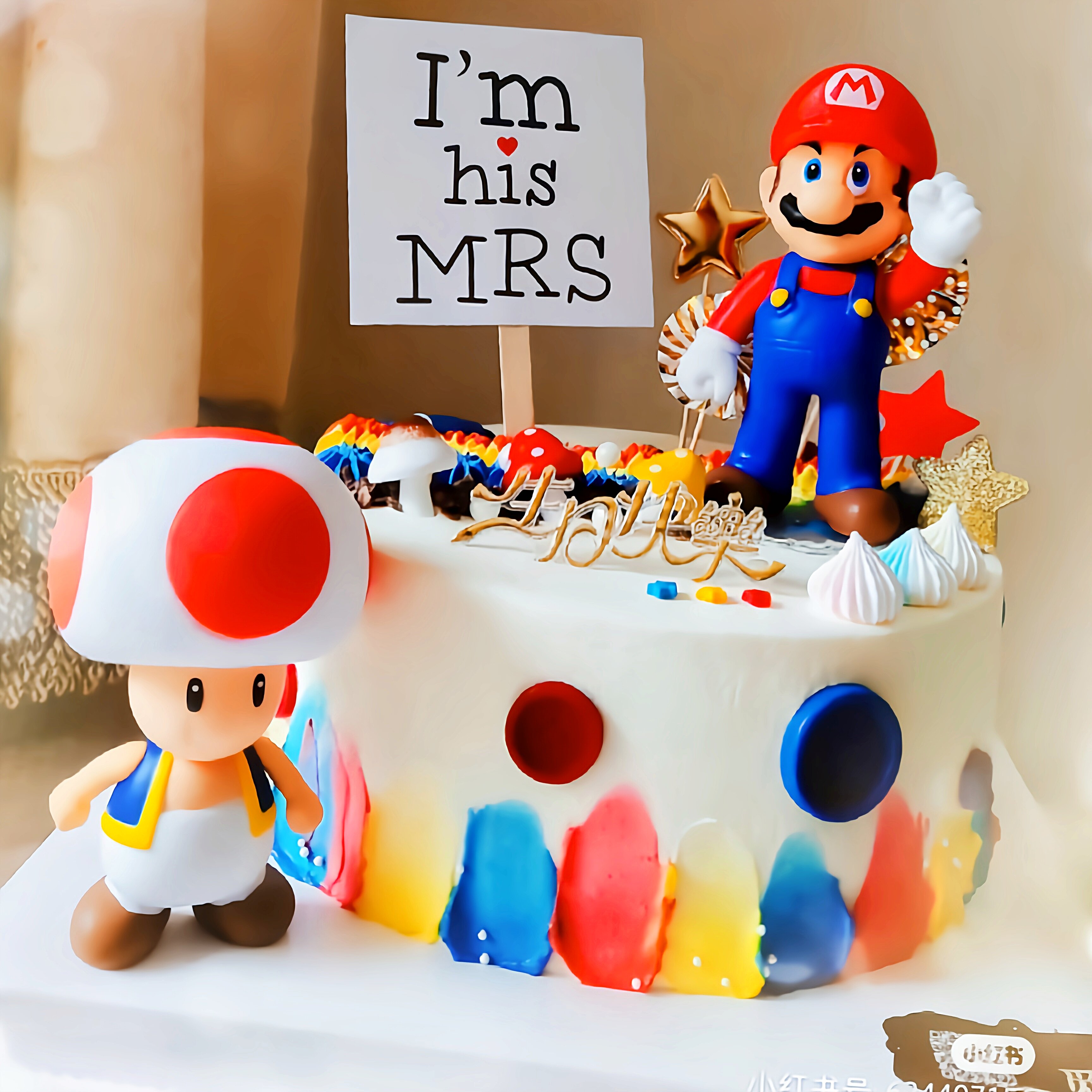 饰摆件马里奥蘑菇插旗儿童派对礼物玩偶车载 超级玛丽生日蛋糕装由