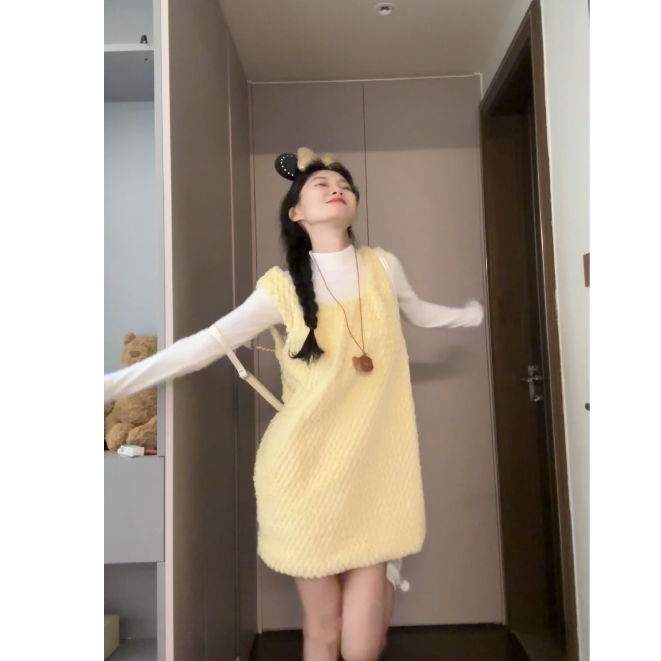 为您提供商品Seven 糯叽叽软糯黄色背心连衣裙短裙冬针织衫 小个子套装 七分糖的详细介绍,