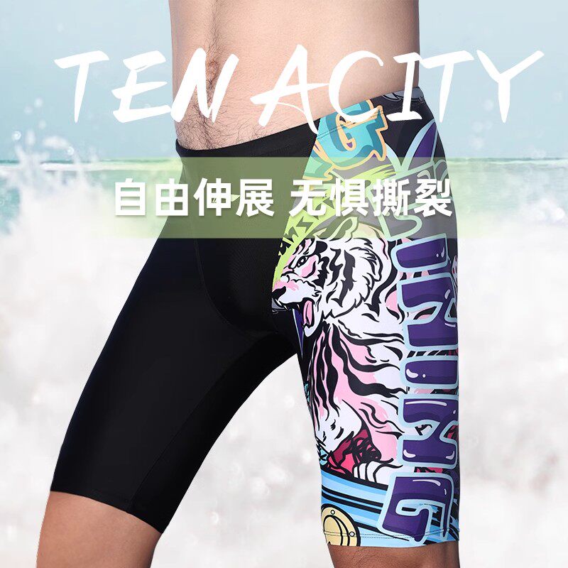防尴尬青少年成人泳衣男款 泡温泉 五分平角及膝竞速游泳裤 361男士