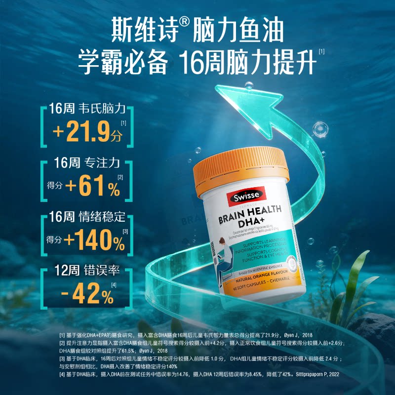 Swisse斯维诗青少年鱼油软胶囊RTG补脑记忆高中学生备考专注力dha由