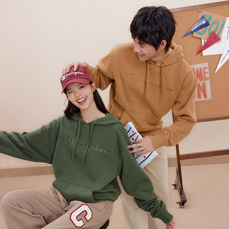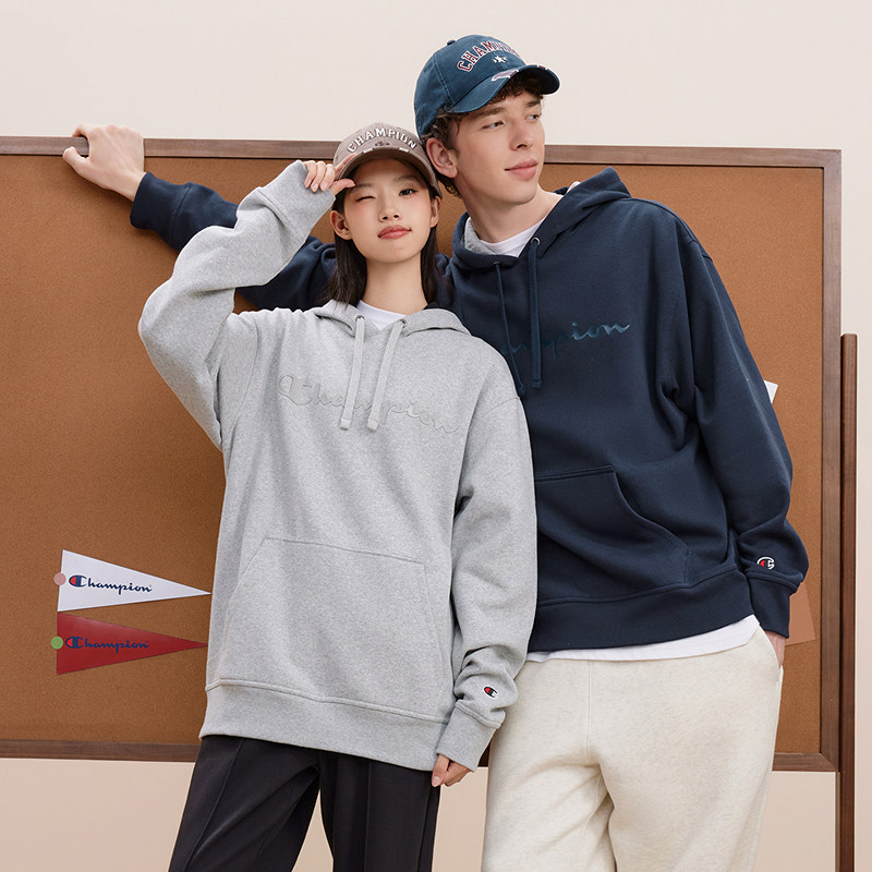 Champion冠军情侣加绒卫衣男秋季 美式 连帽上衣保暖印花冬季 新款由