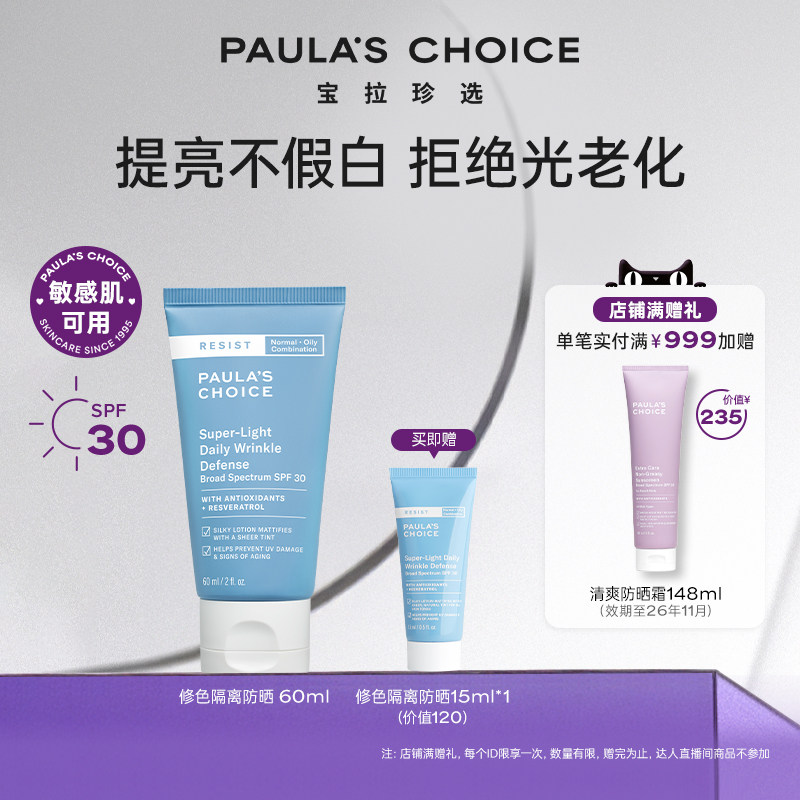 宝拉珍选猪肝防晒15ml清透修色物理隔离面部遮瑕男女 跨境好物由