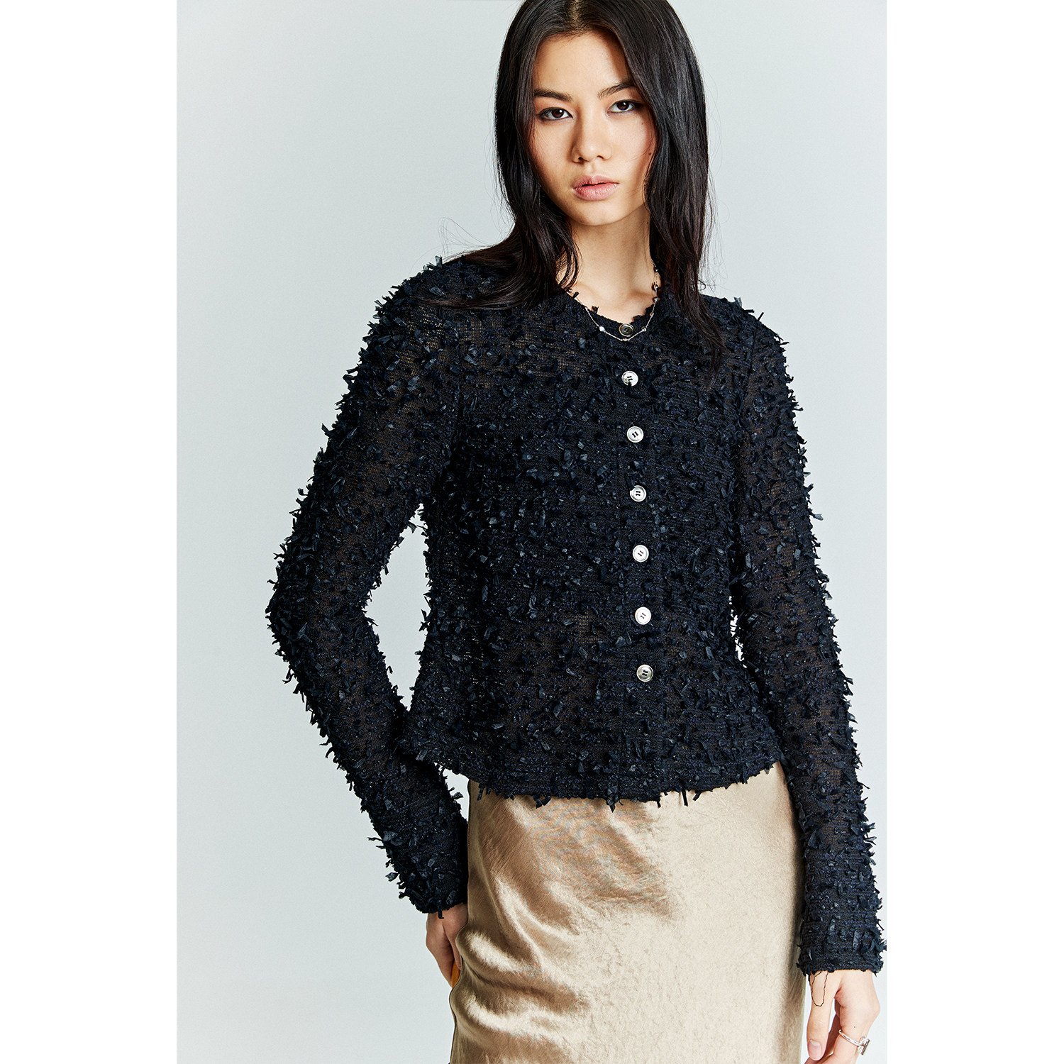 日本进口立体蝴蝶纱飘逸单排扣微透防晒小香开衫 Studios MRS由
