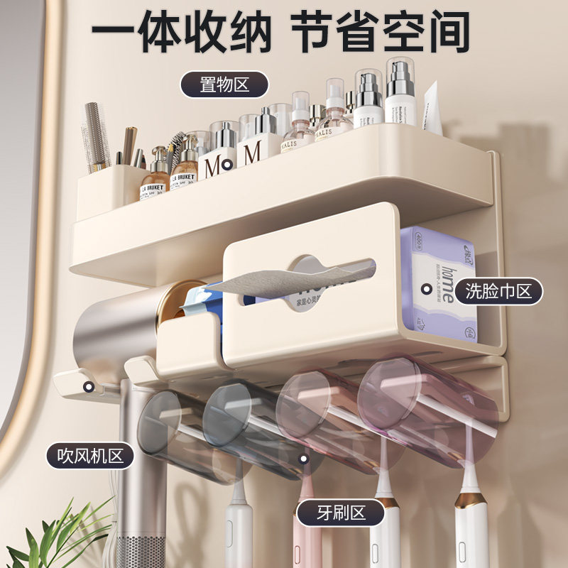 牙刷架 刷牙杯架收纳置物架免打孔电动牙刷牙膏卫生间漱口杯壁挂式