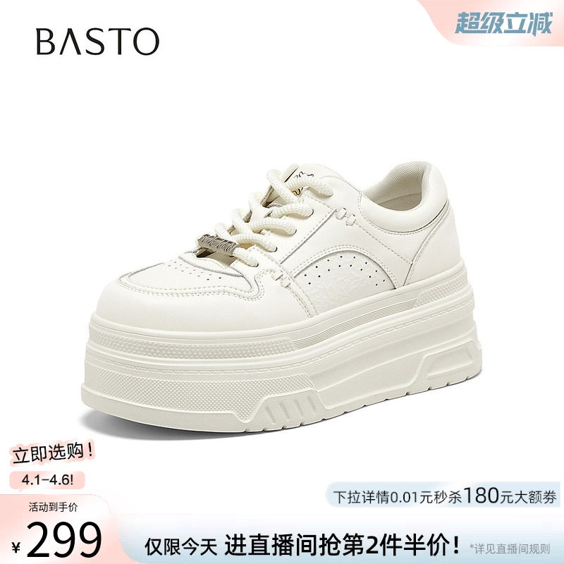百思图春秋商场新款 小白鞋 女运动休闲鞋 CV185CM5 松糕厚底板鞋由