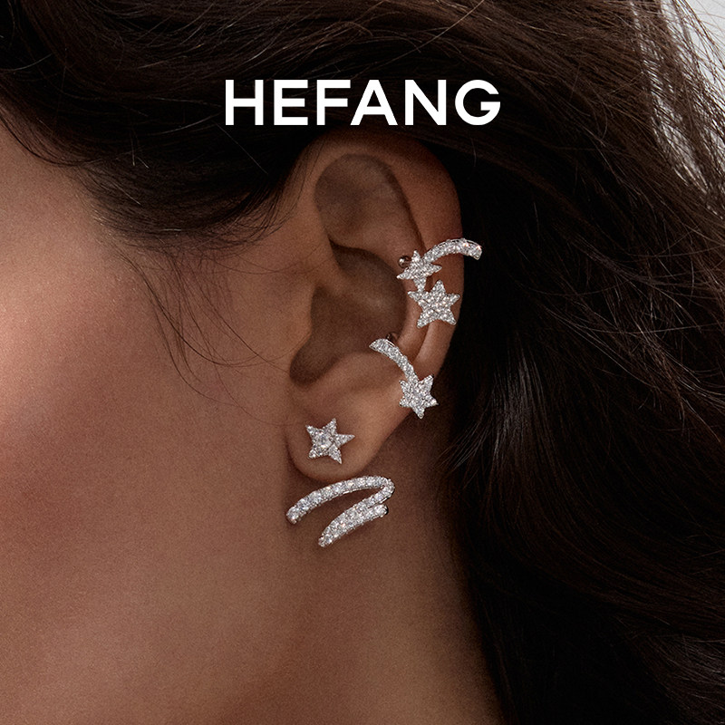 HEFANG何方珠宝星光飘带耳钉耳环耳饰轻奢配饰女生日礼物由