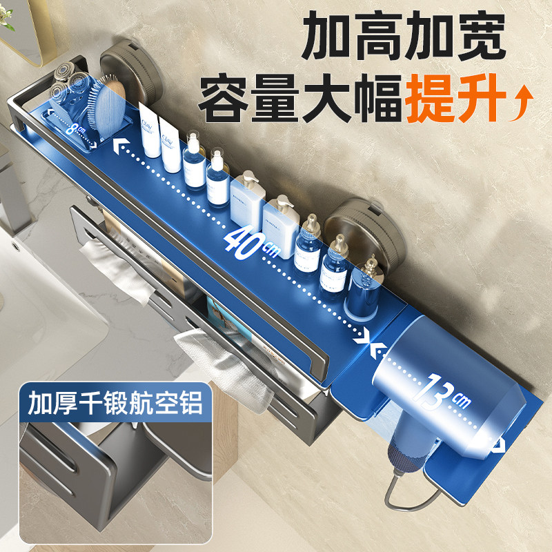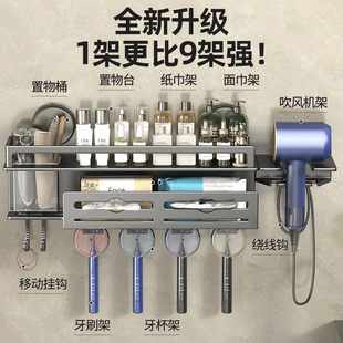 吹风机架洗脸巾收纳架子 吸盘多功能枪灰牙刷置物架卫生间壁挂式由