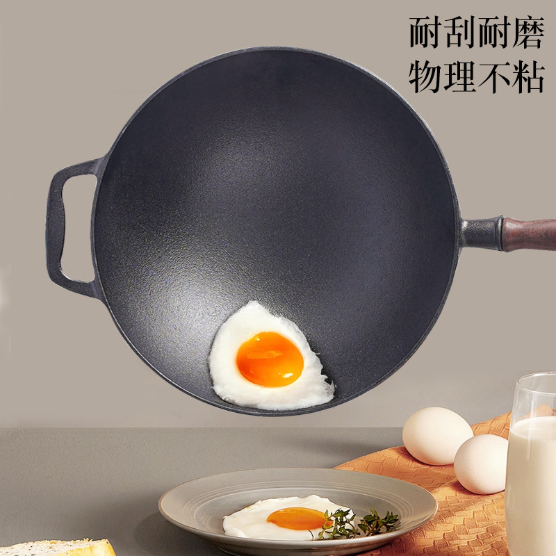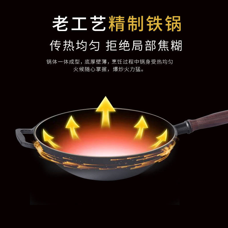 为您提供商品炒菜锅无涂层不粘锅 小幸福铸铁炒锅圆底铁加厚锅家用老式的详细介绍,