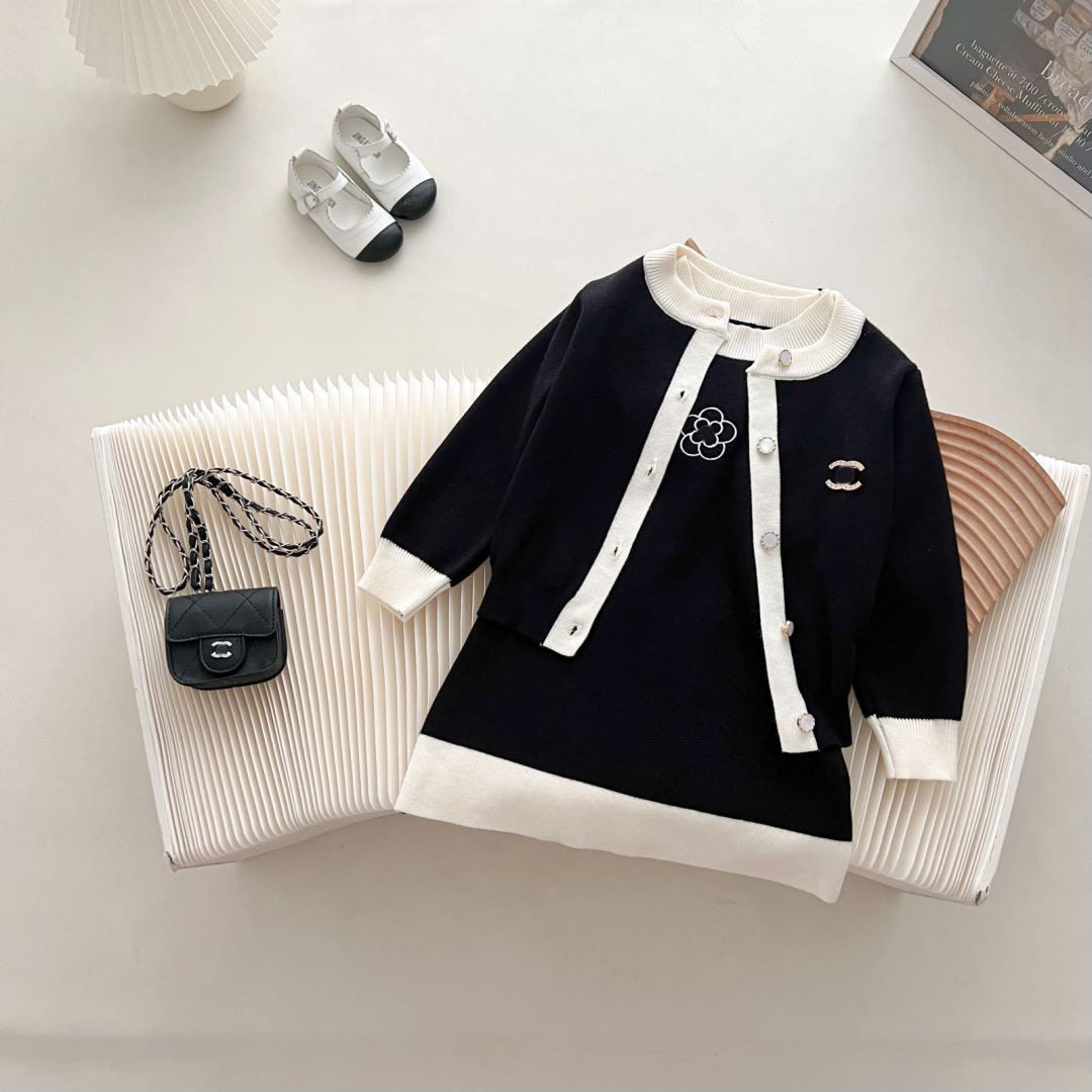 儿童小香风针织开衫 背心裙两件套外贸 2025秋冬新款 女童连衣裙套装